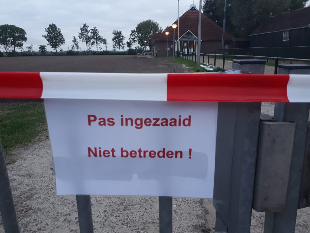 Het sportveld en de speeltuin hebben de afgelopen weken een stevige onderhoudsbeurt gehad. Er is nu nieuw gras ingezaaid en het is van het grootste belang dat zowel het veld als de speeltuin voorlopig niet wordt betreden. We hopen dat er gauw weer een mooie grasmat ontstaat en dat er weer volop gesport en gespeeld kan worden. Nog even geduld!!