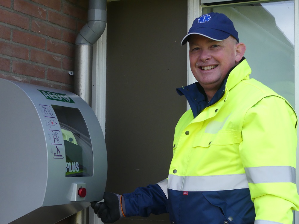 Harry, werkzaam als medische docent en daarnaast in de praktijk werkzaam, weet als geen ander hoe belangrijk het is dat de AED naar behoren functioneert. Uit controle was gebleken dat de AED zelf nog prima is, maar dat deze snel verslechtert als er niets aan de kast wordt gedaan. De conditie van de verwarming en de ventilatie in de kast was slecht en dit is niet goed voor een optimale werking van de AED. Nadat Harry dit gezien had, gaf hij aan dat dit zo niet kon blijven. De kast en AED zijn in het belang van een ieder in onze gemeenschap.