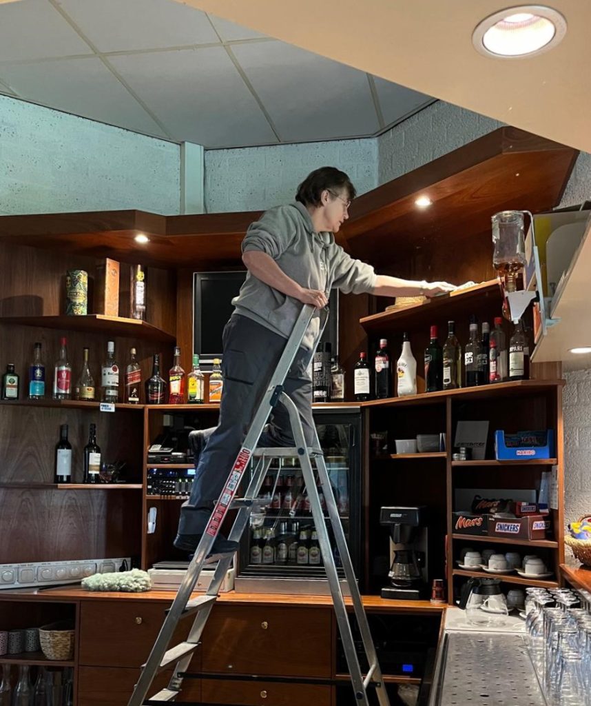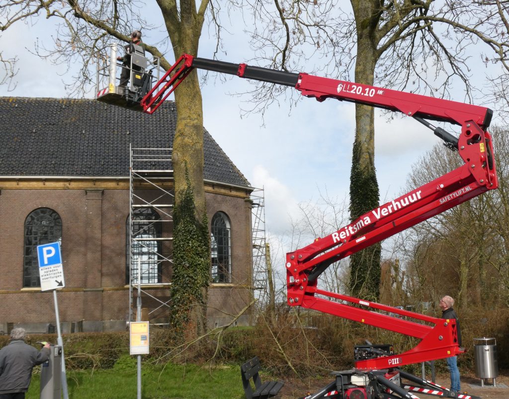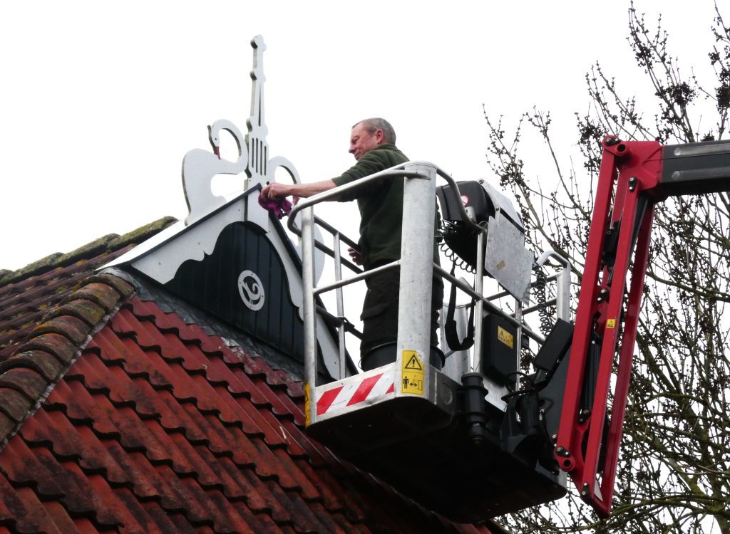 De jeu de boulers kunnen weer met hun nette kleren op hun bankjes zitten en kinderen kunnen spelen op schone toestellen. Er werd op HOOG niveau gewerkt, hiervoor is Age de aangewezen specialist. De uilenborden van het dorpshuis zijn weer als nieuw! De hoge bomen bij de kerk zijn gesnoeid. ( zie de foto’s)