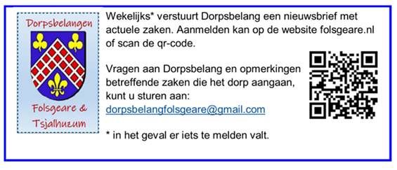 Nieuws vanuit Doarpsbelangen Folsgeare & Tsjalhuzum