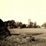 Het is October en de kuilbult staat rechts voor het hok. De melkemmers staan op de emmerbank tegen de achtermuur. Links van de schuurdeuren hangt het tuig voor de paarden.