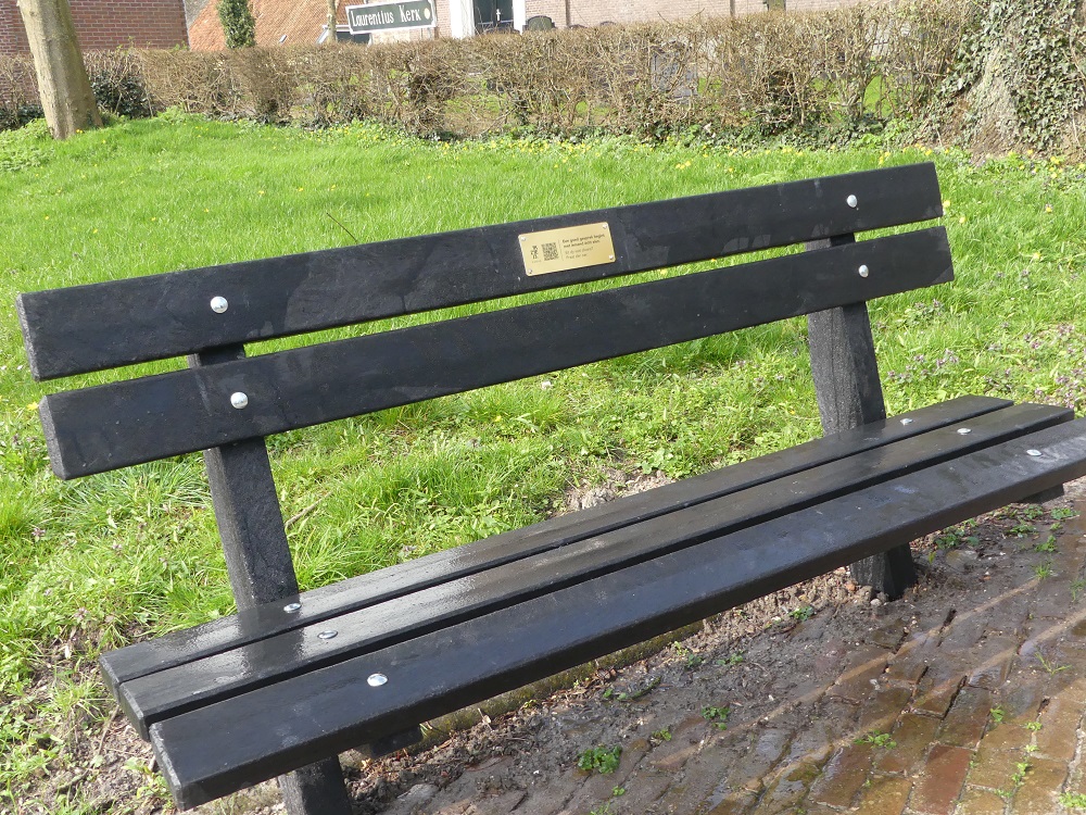 Sinds gisteren zijn het bankje bij het JOP en het bankje bij “de Hoanne” ook voorzien van een dergelijke plaquette.