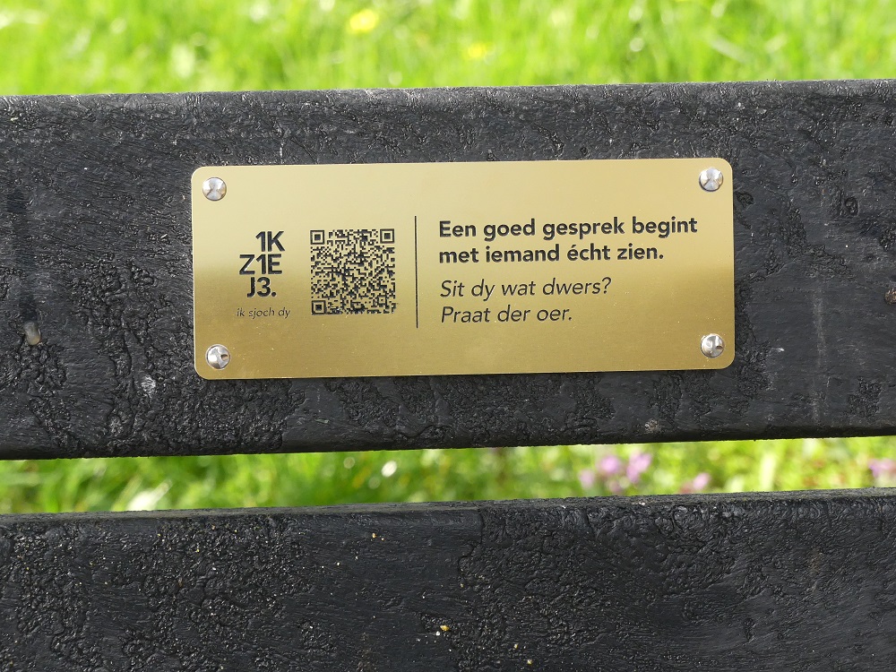 Door heel Nederland staan al meer dan 1000 bankjes, die ruimte bieden voor een goed gesprek. De bankjes zijn te herkennen aan de plaquette met de tekst ‘Een goed gesprek begint met iemand écht zien’, het 1K Z1E J3-logo en een QR-code.