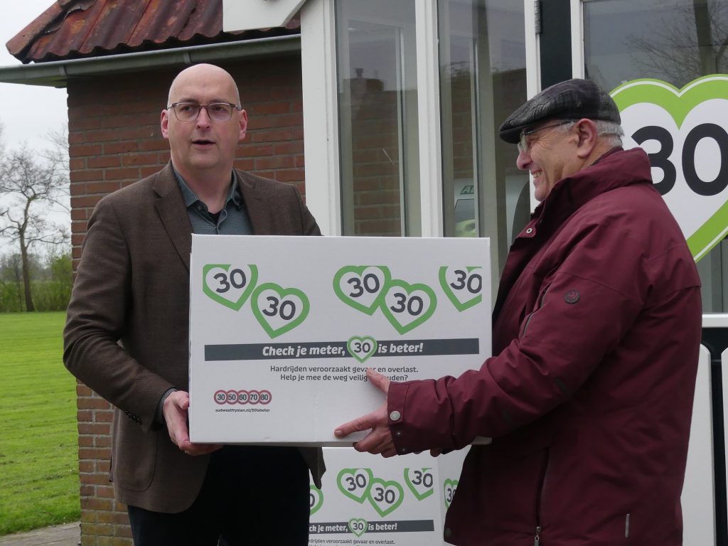 Op donderdag 21 maart werd in Folsgeare het startsein gegeven voor de campagne. Wethouder Mobiliteit Michel Rietman overhandige daarvoor de eerste zogenaamde ‘verkeersgedragtoolbox’ aan Dorpsbelang Folsgeare. In de toolbox zitten allerlei leuke en handige hulpmiddelen. Hulpmiddelen die bedoeld zijn om het gesprek over te hard rijden aan te gaan en om de snelheidslimiet op een positieve manier zichtbaar te maken.