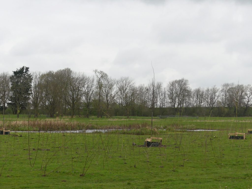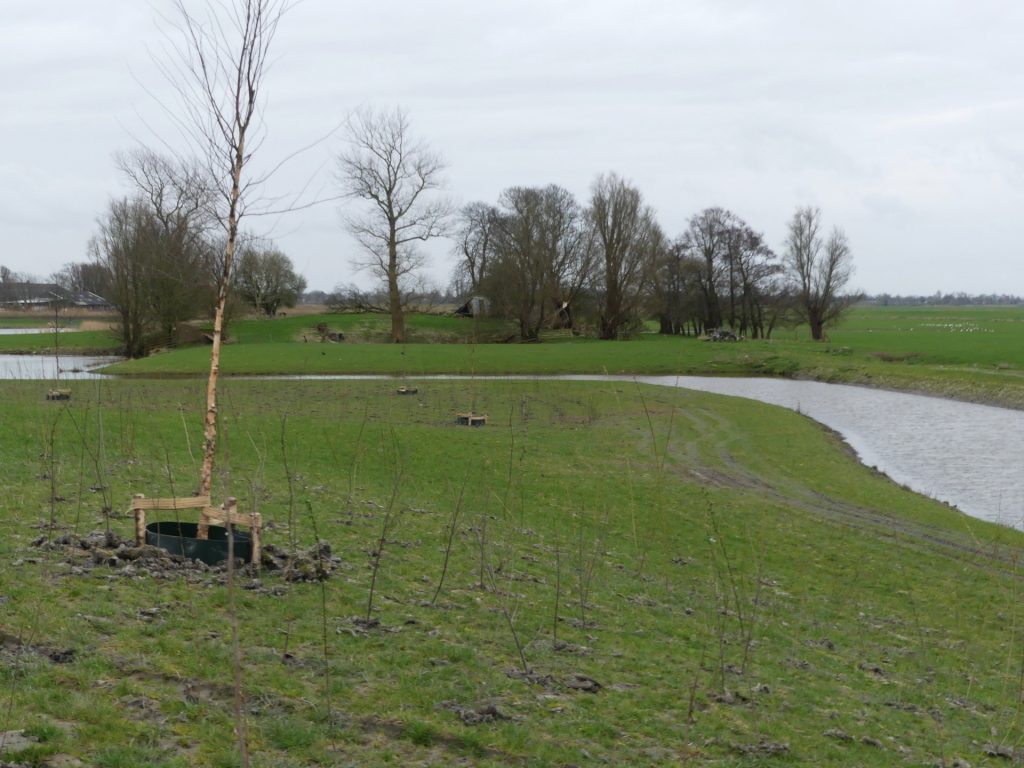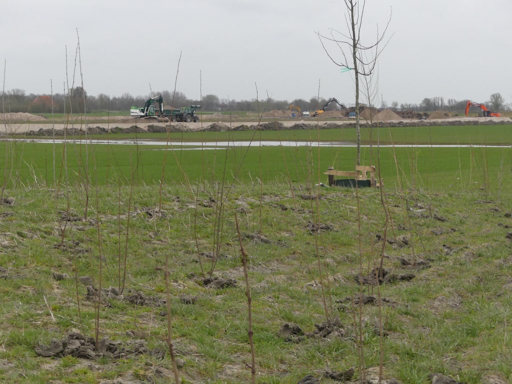 Het is een mooie brede strook bomen en struiken geworden, waar binnenkort een wandelpad, een zgn laarzenpad, tussendoor zal worden gecreëerd.