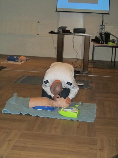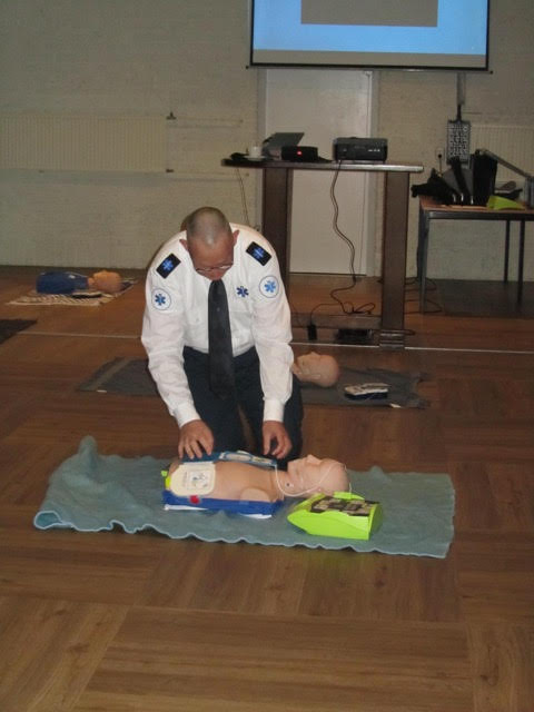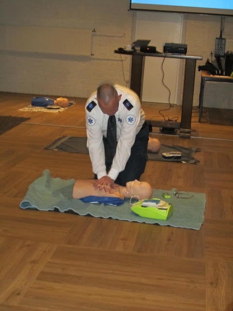 Hij had maar liefst 6 oefenpoppen meegenomen, zodat er na de instructie intensief geoefend kon worden.