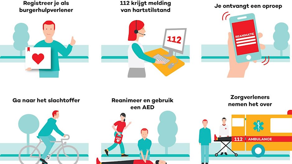 Belt iemand 112 met het vermoeden van een hartstilstand, dan roept HartslagNu automatisch burgerhulpverleners op in de buurt van het slachtoffer.